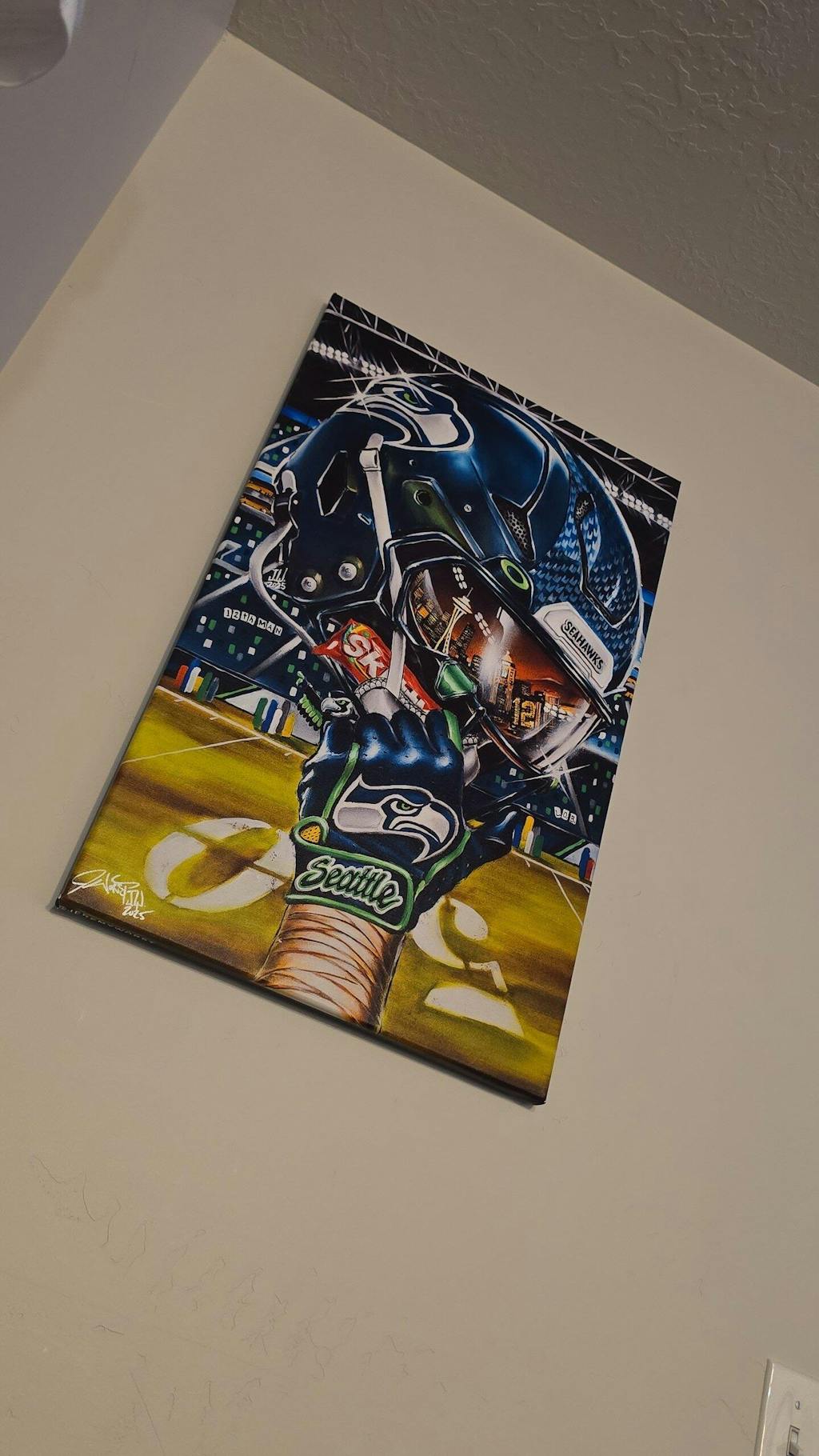 I was excited for jeremy to start painting the seahawks for so long! You could probably guess how excited I was once he finished this amazing piece of art, thank u Jeremy! I know need to get my dad a packers one haha. Go Hawks