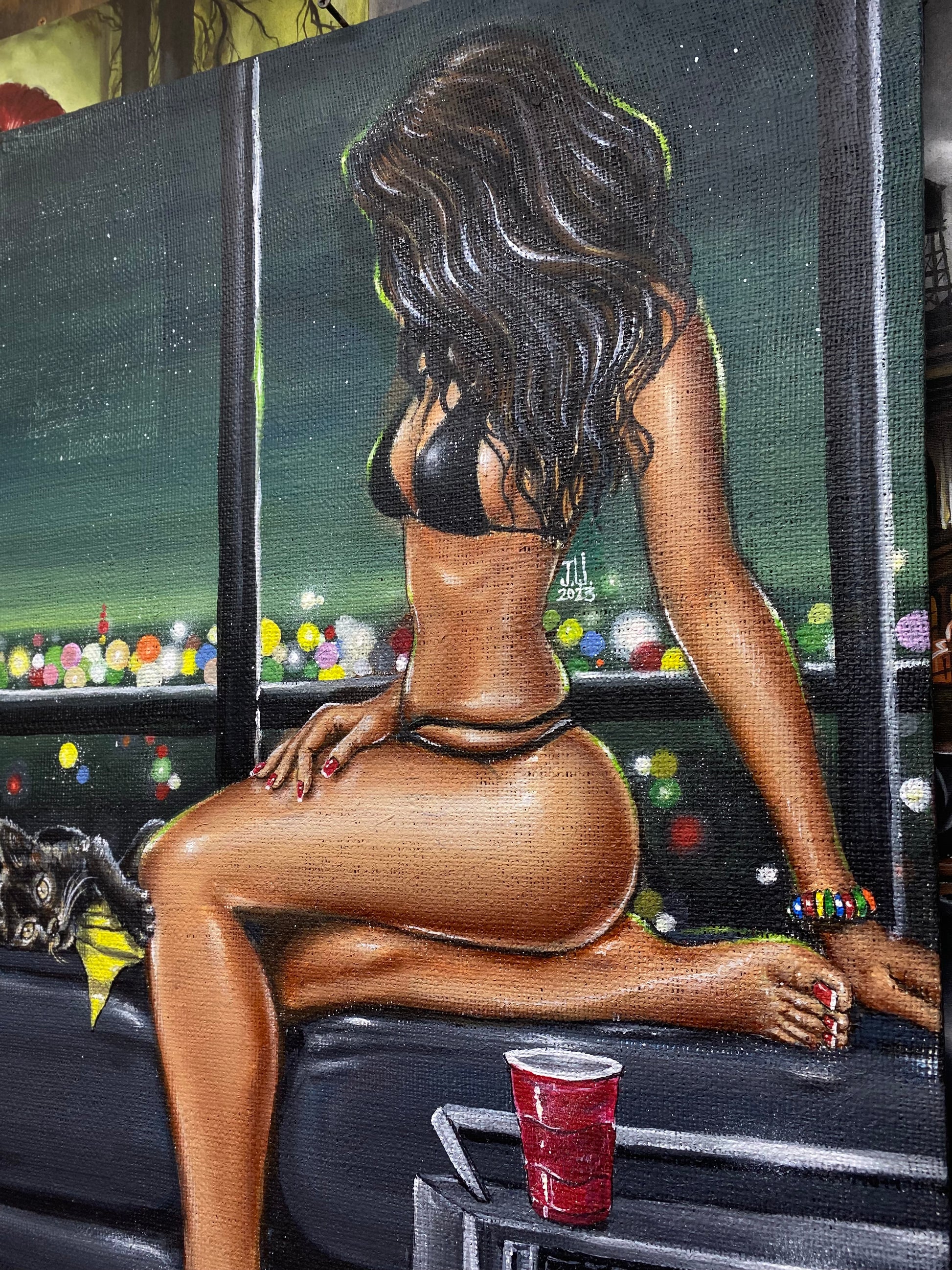 JEREMY WORST "Boombox Kitty" Sexy Girl sitting on couch with her Kitty bikini