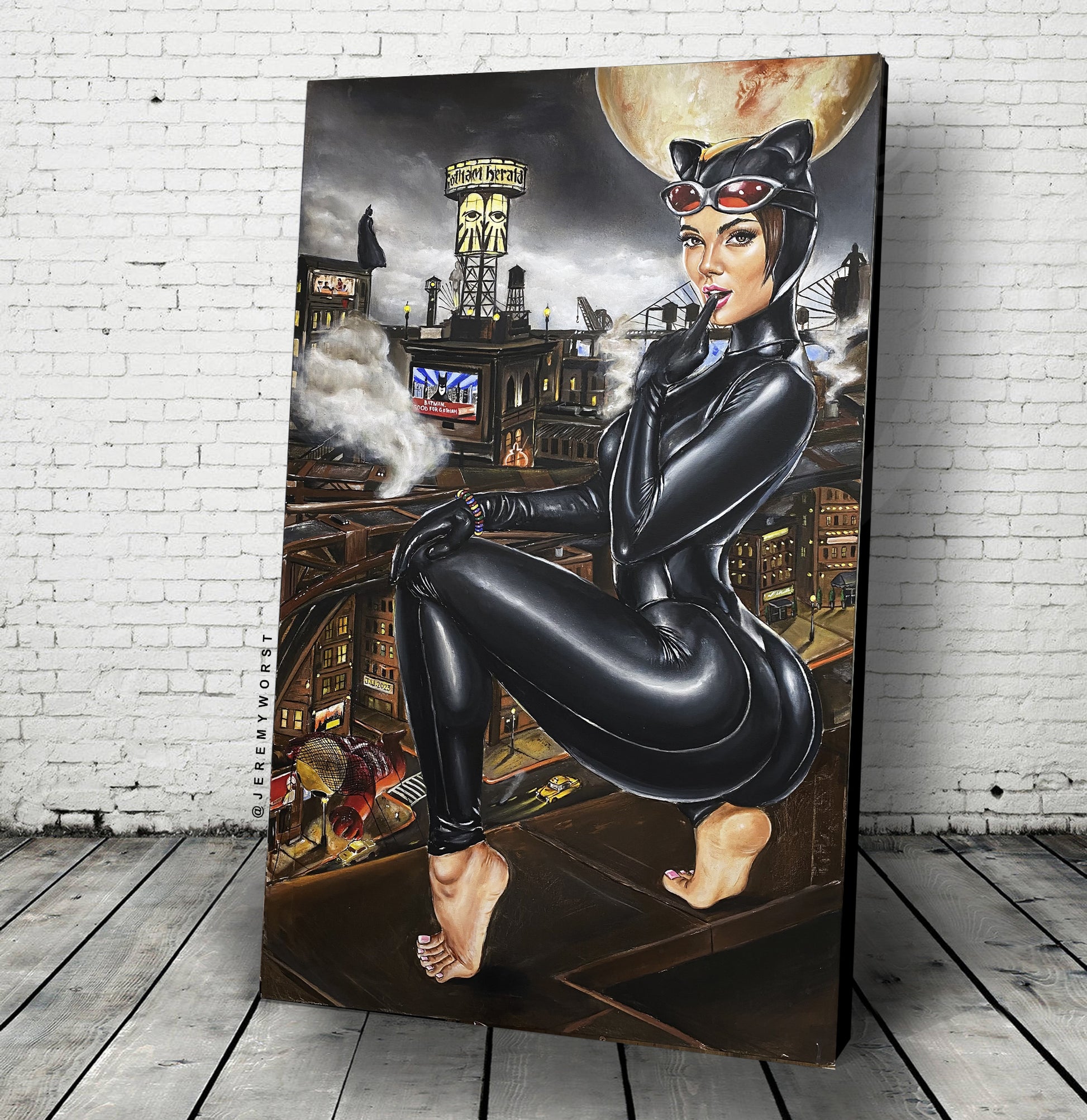 Absolutely love this rendition of Catwoman, the detail of Gotham City in the background with Batman! Got this on Canvas! Order came fast and no issues! Thank you again for the great piece!